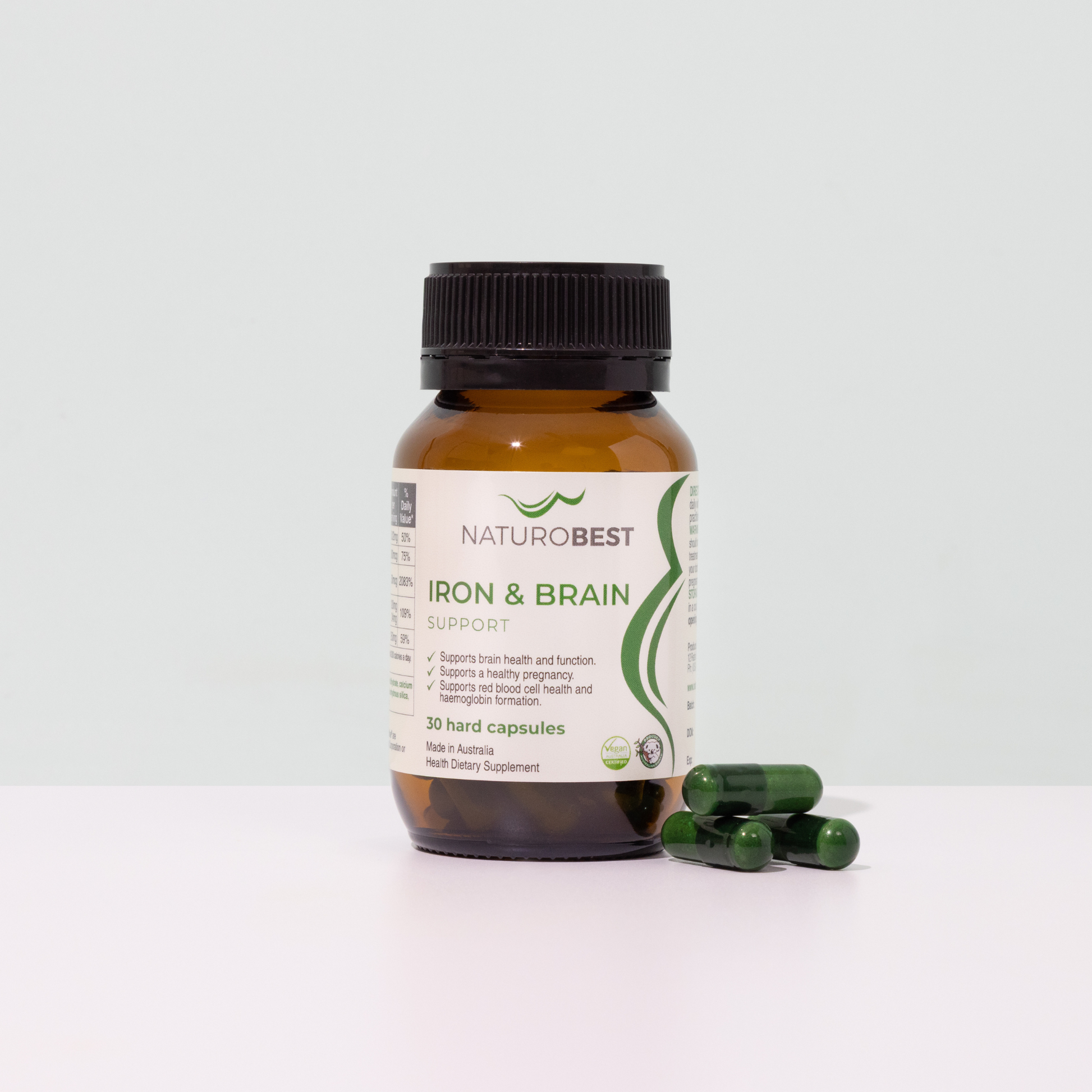 Iron & Brain Support is a vegan-friendly iron supplement in the form of iron bisglycinate which is more likely to be well absorbed and well tolerated than other forms of iron.